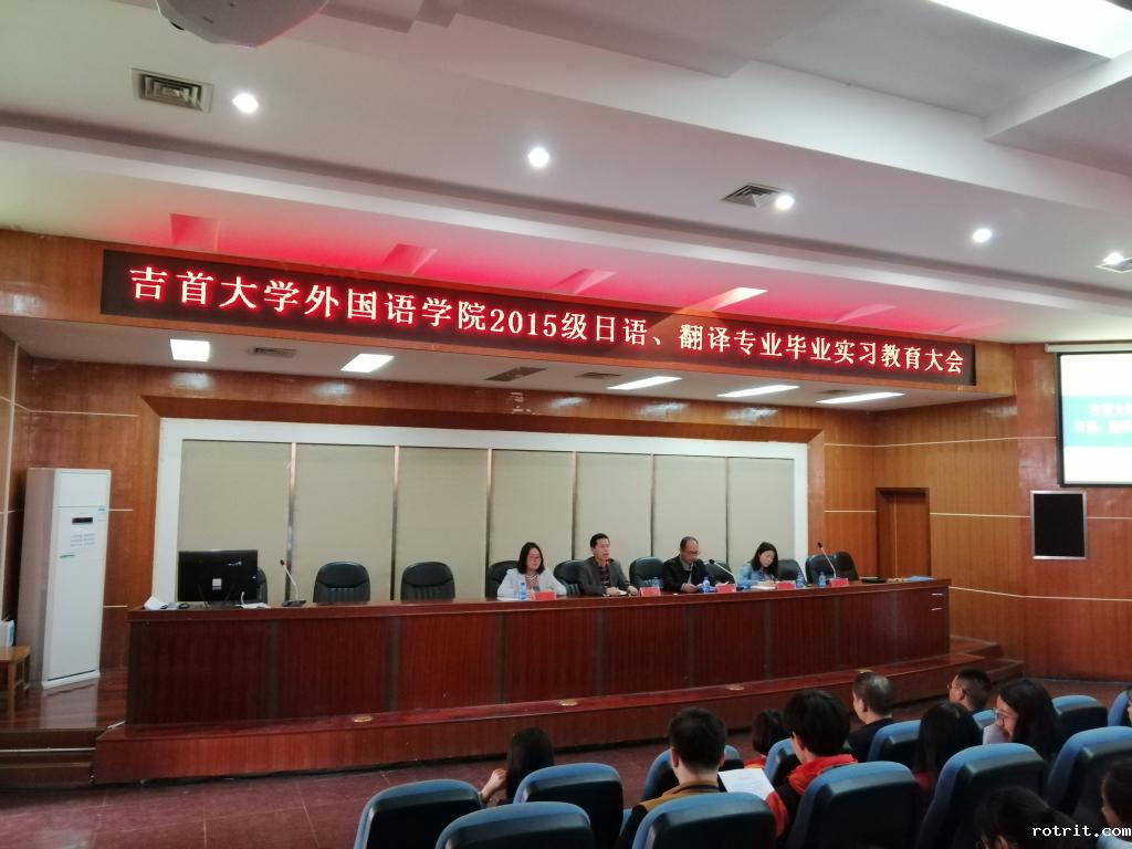 本网讯(通讯员 张光辉)为确保我院学生外出实习教学活动的顺利进行,3月27日下午,伟德app帮助中心于逸夫楼多功能厅举行2015级学生毕业实习教育大会。院长汤敬安,副院长徐兴胜,学工办主任郑惠杰,翻译系系主任谭异,日语系系主任符婷出席了此次会议,本次会议由教务秘书窦文祥主持,2015级以及2016级非师范全体学生参与其中。
