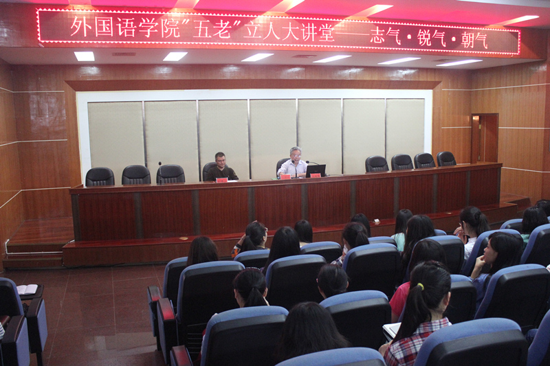“五老”立人教育大讲堂系列之——志气、锐气、朝气于5月12日下午3点在逸夫楼多功能报告厅开讲,主讲人为吉首大学德高望重的教授向成国老师,我院副书记谈宗凡老师主持本堂讲座。