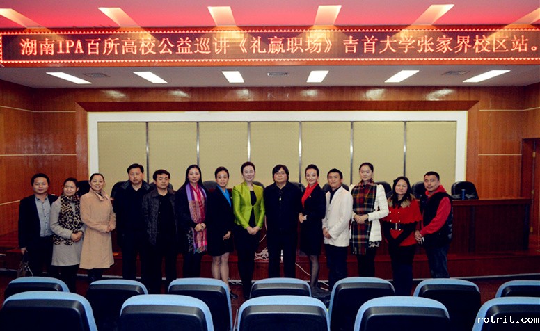 本网讯(罗旭杰 黄晴 王丽君 曾婷 章志威 杨东旭)2014年11月29日下午三点,湖南IPA百所高校公益巡讲《礼赢职场》吉首大学张家界校区“求职面试”讲座在多功能报告厅隆重举行,我院学工办冯蕾老师出席了本次讲座。