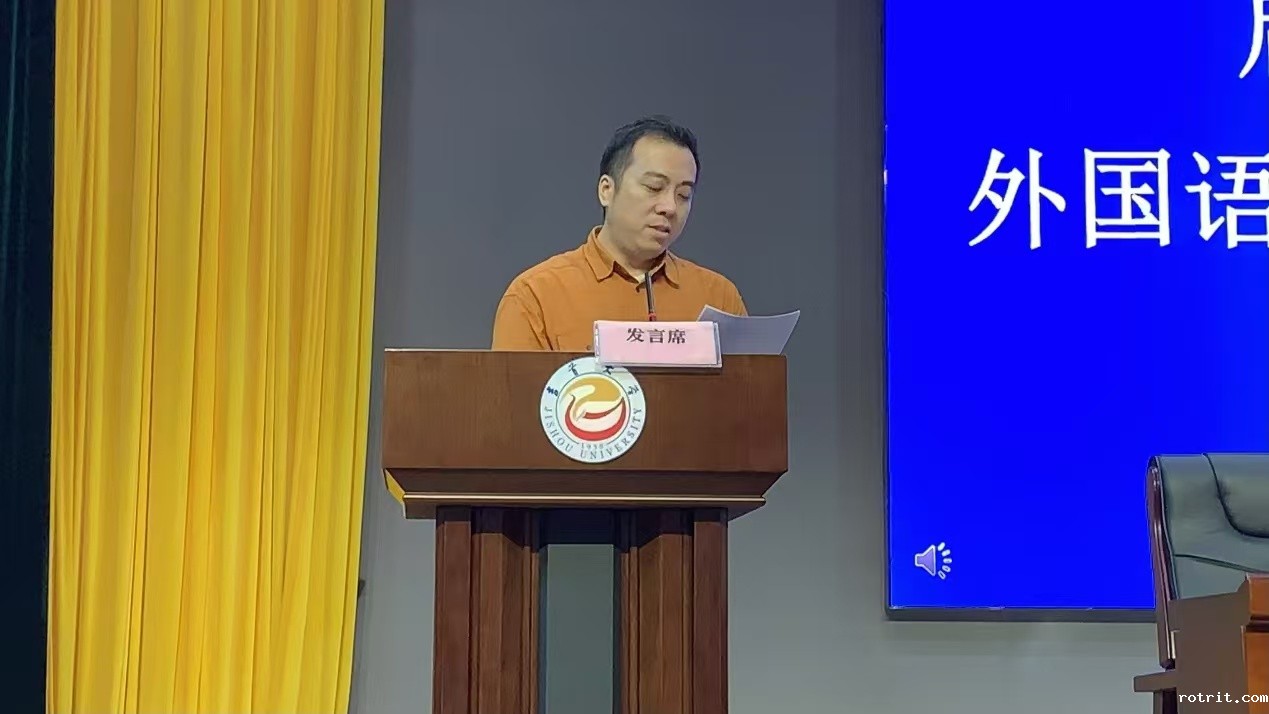 大会伊始,全体起立,奏唱国歌。在校生代表2021级英语(师范)专业张瑞芳首先发言,她分享了自己大学学习和生活经历,鼓励新生们积极融入大学生活,勇于探索和挑战自我。紧接着,本科新生代表2024级商务英语专业贺娜和研究生新生代表24级翻译硕士李金洋分别发言,他们表达了对未来学习和生活的期待与憧憬。教师代表刘锋博士在发言中强调了学院的教育理念和学术追求,鼓励新生们在学术探索中不断进步。外教代表Tu-Kwon Thomas老师通过研究生张婷宇同学的交替传译,向新生们传达了外语学习和具备国际视野的重要性和跨文化交流的价值。