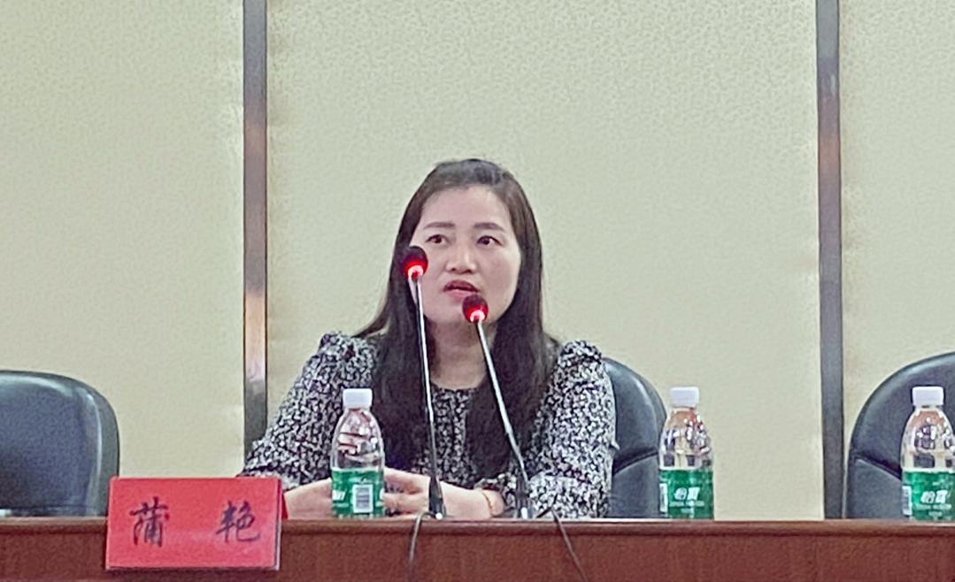 图为蒲艳导游在做讲座